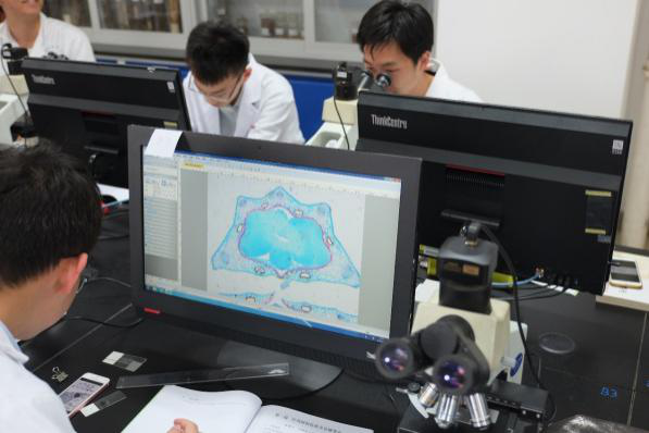 除此之外,中药鉴定实验室还具备自己制作植物石蜡切片和冰冻切片的能力。在满足传统性状鉴别和显微鉴别教学的基础上,还有电子鼻、色度仪等前沿仪器可以对中药材及饮片的感官进行数字化鉴定与评价,使员工能够掌握除传统鉴别知识外的前沿鉴定技术。