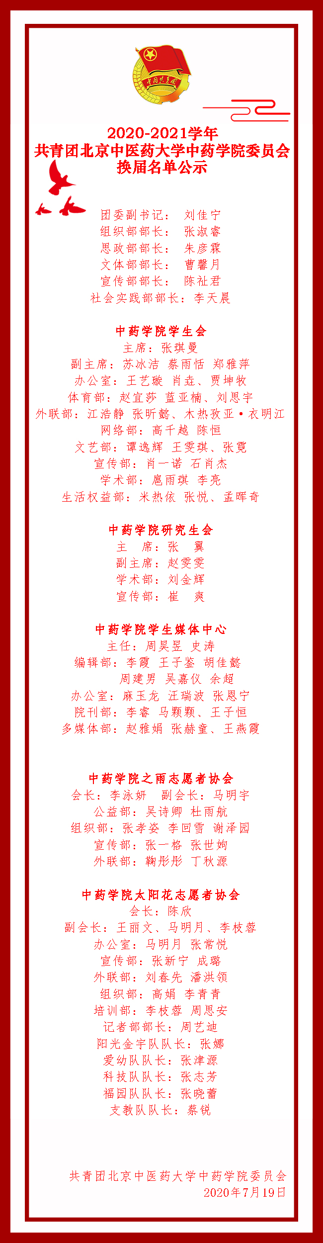 【换届】2020-2021学年共青团betway88西汉姆联委员会换届名单公示
