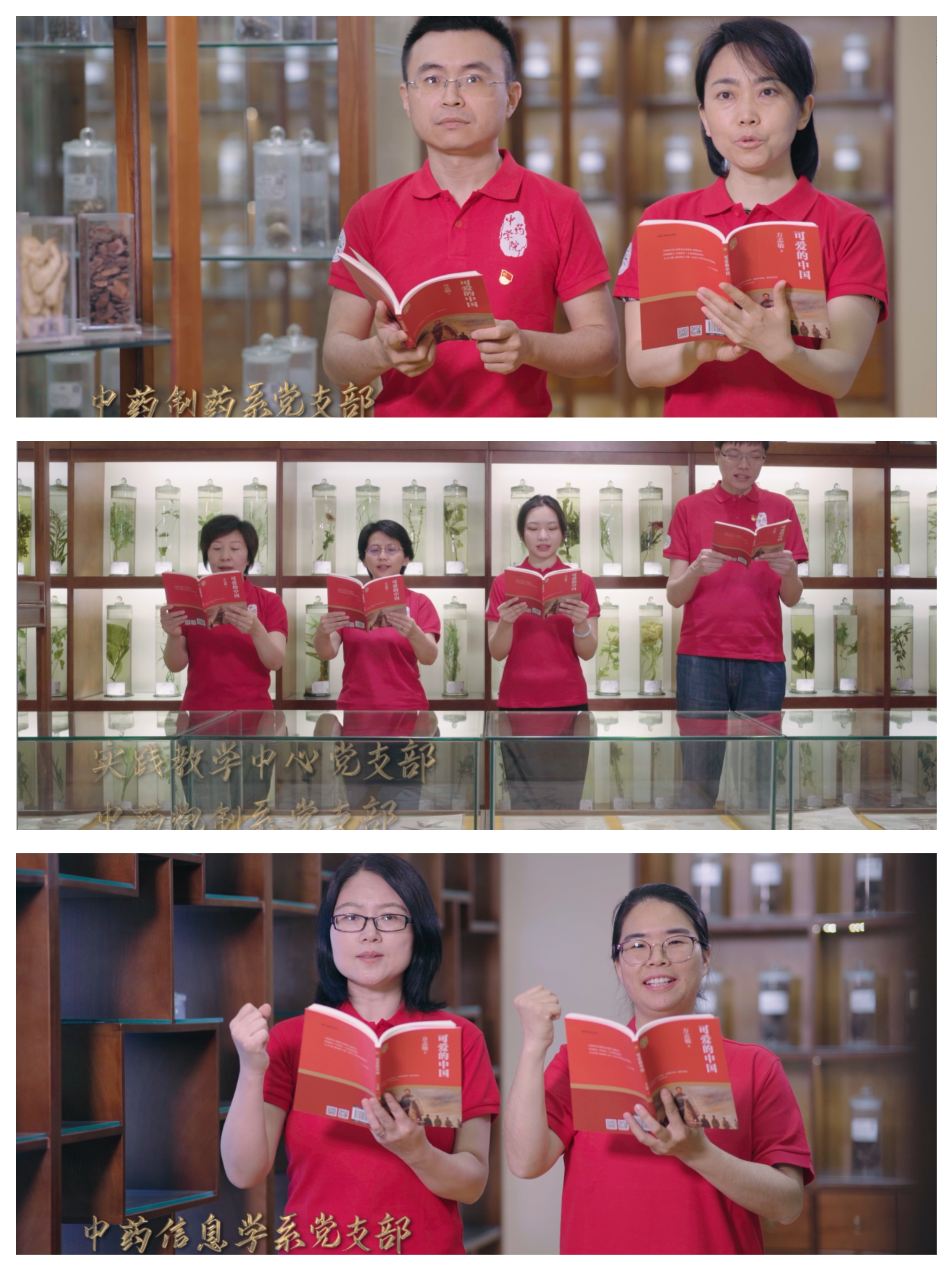 第二篇章“奋进征程”。魏胜利副经理领读《中华民族的人格》,用激昂而又坚定的声音展现中华民族的真人格、真精神。中药资源与鉴定系党支部、中药分析系党支部、中药生药研究生党支部、临床中药系党支部、中药药理系党支部、临床中药研究生党支部共读《功勋—屠呦呦:与青蒿结缘,用中医药造福世界》《功勋—钟南山:大医精诚写大爱》,学习典型、开拓进取;中药化学系党支部、中药化学研究生第一党支部、北京中医药研究公司党支部共读《战疫口述实录》,表达对中医药工作者的崇敬之情。