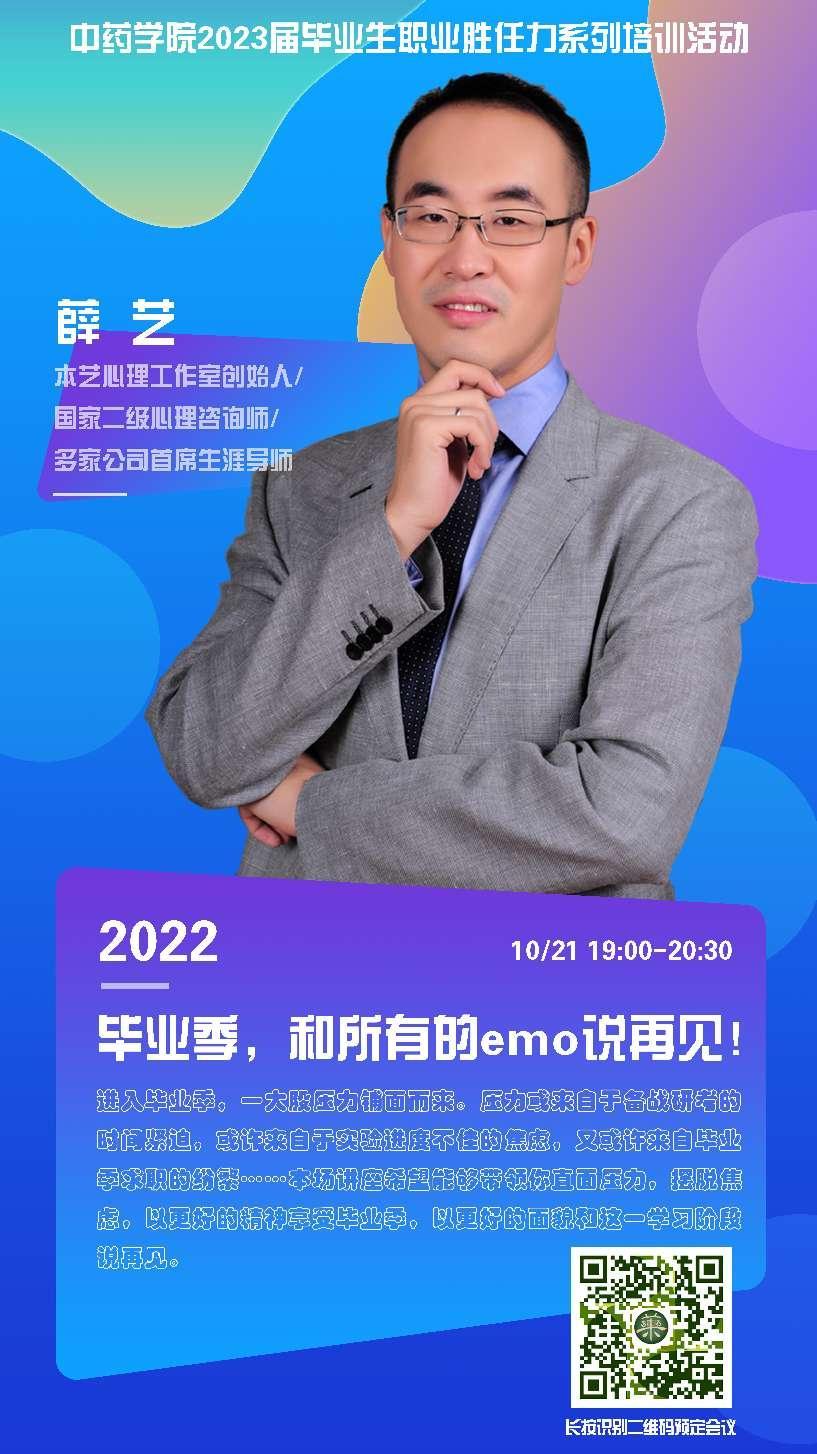 2022年10月21日晚,由betway88西汉姆联主办,betway88西汉姆联就业创业指导服务中心承办的毕业生焦虑情绪应对讲座——“毕业季,和所有的emo说再见!”通过腾讯会议顺利举办。本次活动邀请到国家二级心理咨询师、生涯导师薛艺作为嘉宾进行分享,活动在学院就业专员王硕主持下进行。