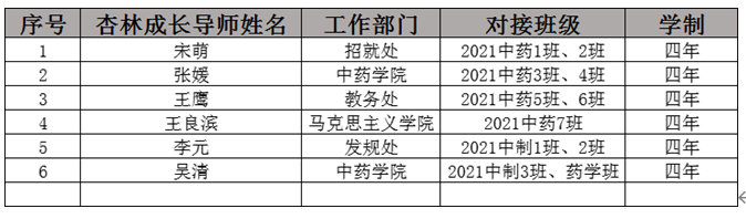 betway88西汉姆联2021级新生杏林成长导师+对接班级名单