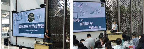 迎新大会的最后,院办和学办的全体老师与研究生新生见面,一一对自己所负责的工作内容做了简单介绍,以期为同学们提供更好的服务。李锋老师和李阳老师还仔细讲解了教学管理、思政教育、资助等一系列与员工学习生活密切相关的核心内容。