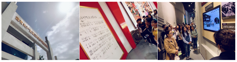 “没有共产党就没有新中国”纪念馆主要由“历史回响,人民心声”、“深山里飞出不朽的歌”、“让心中的歌代代传唱”三个部分组成,同学们在讲解员的介绍下重新温故了中华民族伟大繁荣复兴的历史,进一步明确了共产党是唯一能够团结带领人民前进的政党。随后,同学们还参观了“没有共产党就没有新中国”歌曲创作人曹火星先生的故居,先生简陋的住宿条件给大家留下深刻的印象,同学们纷纷表示,作为新时代的青年人不应贪图享受,应当积极投身祖国建设的方方面面。参观结束后,同学们纷纷再一次聚集在文字、图片、雕塑前展开热烈讨论,现场气氛非常活跃。