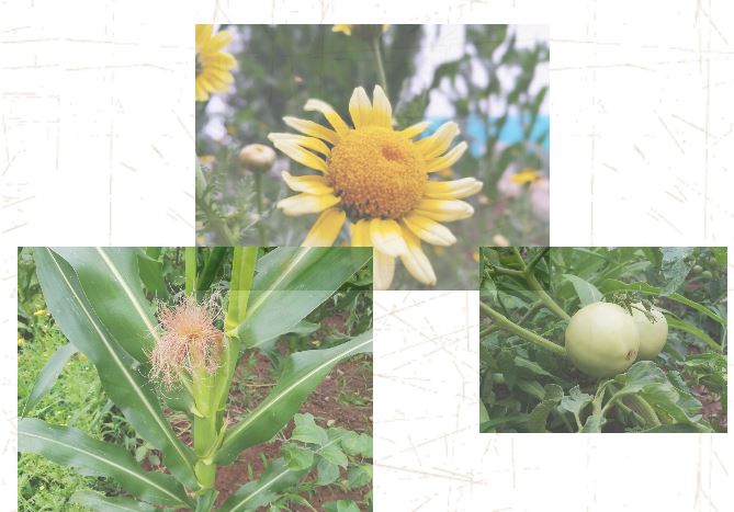 新鲜劲儿还没过,收拾完住宿后就迫不及待在基地逛起来。宿舍门外就是爬满丝瓜藤的木架,木质镂空的设计,古朴有味。一片野菊傲然的盛放着,露出饱满的头状花序。硕大的果子满满当当地挂在树上,若隐若现地在叶片中,显得极为诱人。而正值酷暑的现在,玉米也是长势喜人,真真切切应了那句『用一粒玉米叩开一整个丰收的秋天』。深呼吸,来自山上的清新空气尽数在鼻腔涤荡,仿佛将肺都清洗了一遍,重重吐出最后一口城市带来的浊气,全身心投入山间空气和鸟鸣带来的愉悦环境中。