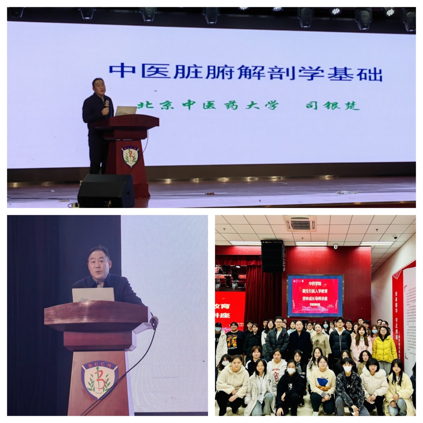 12月7日下午,在良乡校区东院员工活动中心报告厅,中医学院解剖教研室主任,22中制1班、2班杏林成长导师司银楚教授为同学们讲授“中医脏腑解剖学基础”专题讲座。一个小时的时间,司老师给同学们梳理了中医解剖的发展历史,中医解剖学的研究方法和研究意义,以及中医解剖学里的一些重要基本概念含义,对比了中西医里对五脏六腑的认知区别,为同学们讲解了他对中医解剖未来发展的思考。在场200多名同学认真聆听了司老师的讲座,通过学习中医知识,同学们认为,中医中药不分家,医靠药治,药为医用,医药圆融,才能形成合力。