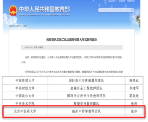 临床中药系已形成“老中青结合”教师队伍,现有8名教师,拥有国医大师、 国家级中医药高等学校教学名师、“万人计划”教学名师、 北京市教学名师、 北京市师德先进个人、北京市青年教学名师等高水平的教学人才。临床中药系教学团队先后被评为教育部国家级教学团队、北京市优秀教学团队、北京市教育先锋先进集体、教育部课程思政示范课、教学名师及教学团队、全国黄大年式教师团队及教育部首批虚拟教研室建设单位。