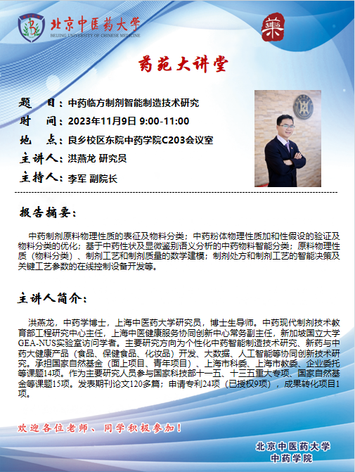 药苑大讲堂|中药临方制剂智能制造技术研究