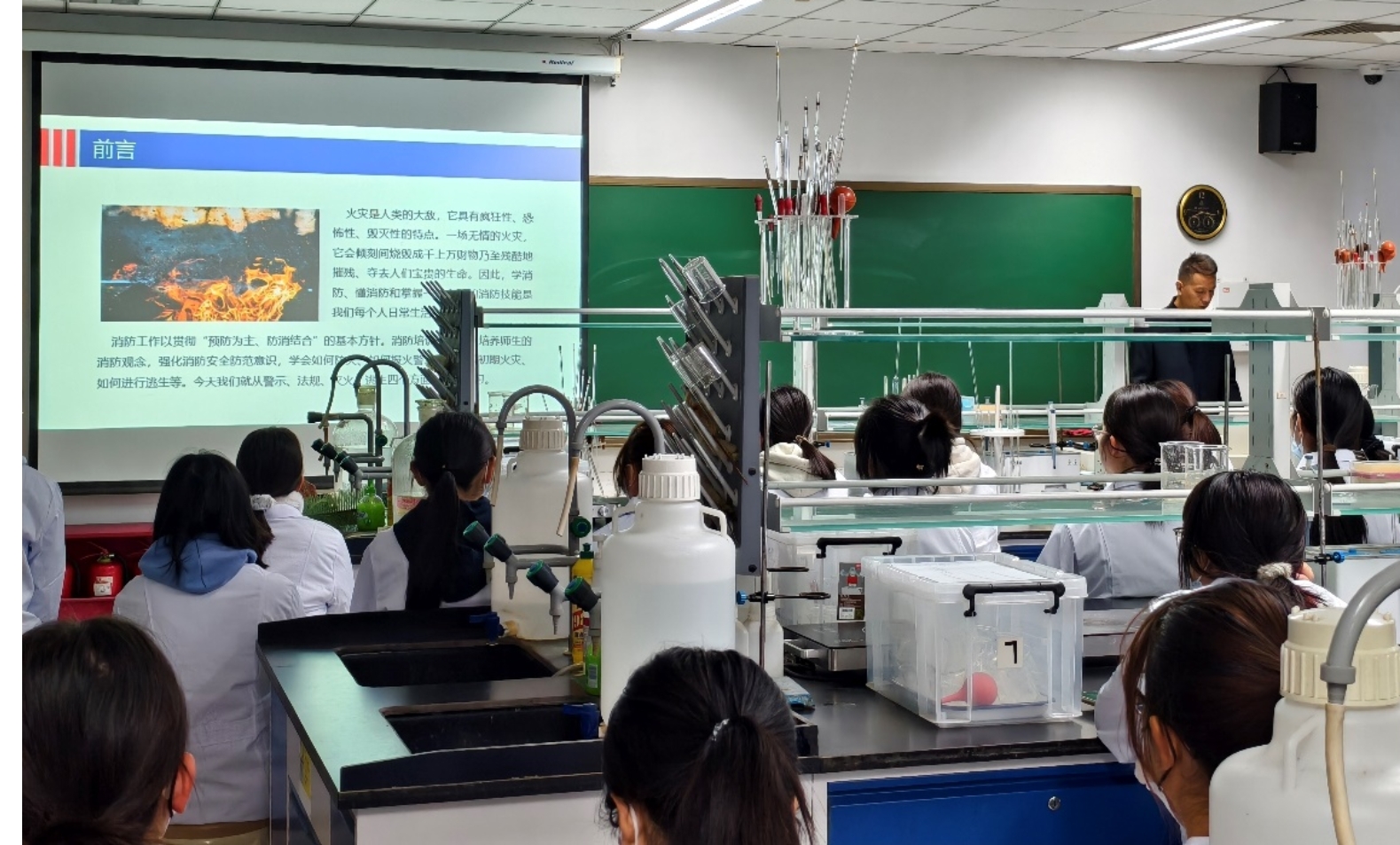 培训过程中,保卫处张辉老师以“理论筑基,案例警示”为核心展开授课。他围绕防火、报警、灭火、逃生四大关键模块,结合实验室的特殊场景,细致拆解了实验操作中的十大防火重点事项,内容涵盖试剂存储规范、仪器使用安全、电路隐患排查等贴合实验实际的核心知识点。授课过程中,张辉老师通过剖析多起典型实验室火灾案例,直观呈现违规操作的严重后果,让理论知识真正入脑入心。