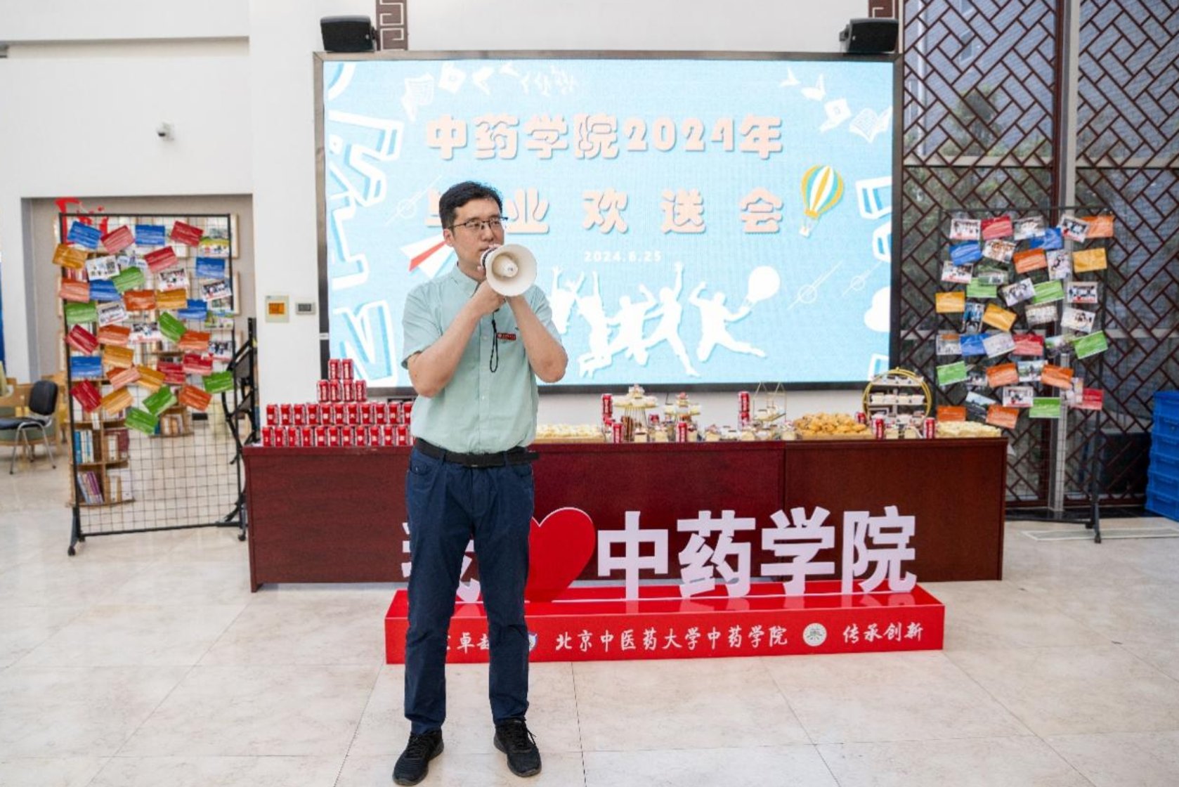 以药为信,星辰作引,傅骞书记为毕业生送上祝福与嘱托。第一味“远志”,希望同学们在未来的人生道路上,怀揣高远的志向,不被眼前的困难和诱惑所阻挡,坚定地朝着自己的目标前进,心向远方,追求卓越;第二味“佩兰”,寓意化湿祛浊,芳香避秽,傅书记叮嘱同学们无论到哪里,要自带正能量,即使不能决定环境,但可以决定自己。坚持自己,激浊扬清,做到“不要人夸好颜色,只留清气满乾坤”;第三味“百合”,祝愿同学们的生活百事合意,保持内心的宁静与平和,强调只有懂得人生有味是清欢,才能拥有精彩美好的人生。傅书记最后寄语毕业生,此去鹏程万里,山海虽远,日月同光,祝愿毕业生一切顺利,熟地当归,未来再见。