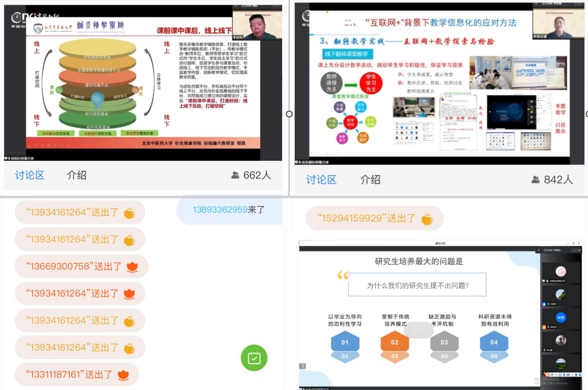 来源: 作者: 发布时间:2022-07-262022年7月24日,闫永红教学名师工作坊活动暨教育部产学研项目“中医药院校教师信息素养及教学指导能力提升”专题讲座在线上直播平台顺利举行。本次活动特邀bw必威西汉姆联官网针灸推拿学院程凯教授、betway88西汉姆联闫永红教授、中医学院于河教授、betway88西汉姆联林志健副教授,以及中国知网何萦莹讲师分别作主题讲座。闫永红教学名师工作坊全体成员,以及来自多所兄弟院校的一线教师参加了活动,线上直播平台参与师生累计达3000余人次。