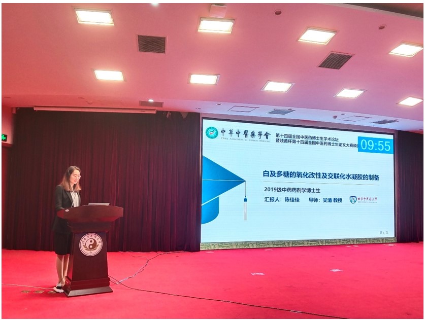 本次大赛共收到论文575篇,历经专家初评、网络盲审、中期评审等阶段,共有100篇优秀论文入围本次大赛。经专家评审,一、二等奖选手现场答辩,大赛最终决出一等奖16名,二等奖24名,三等奖60名,风采奖3名,优秀组织奖20个。公司中药药剂学专业吴清教授指导的博士研究生陈佳佳的论文《白及多糖的氧化改性及交联化水凝胶的制备》荣获一等奖。获奖论文将在《中华中医药杂志》2023年第38卷刊登。
