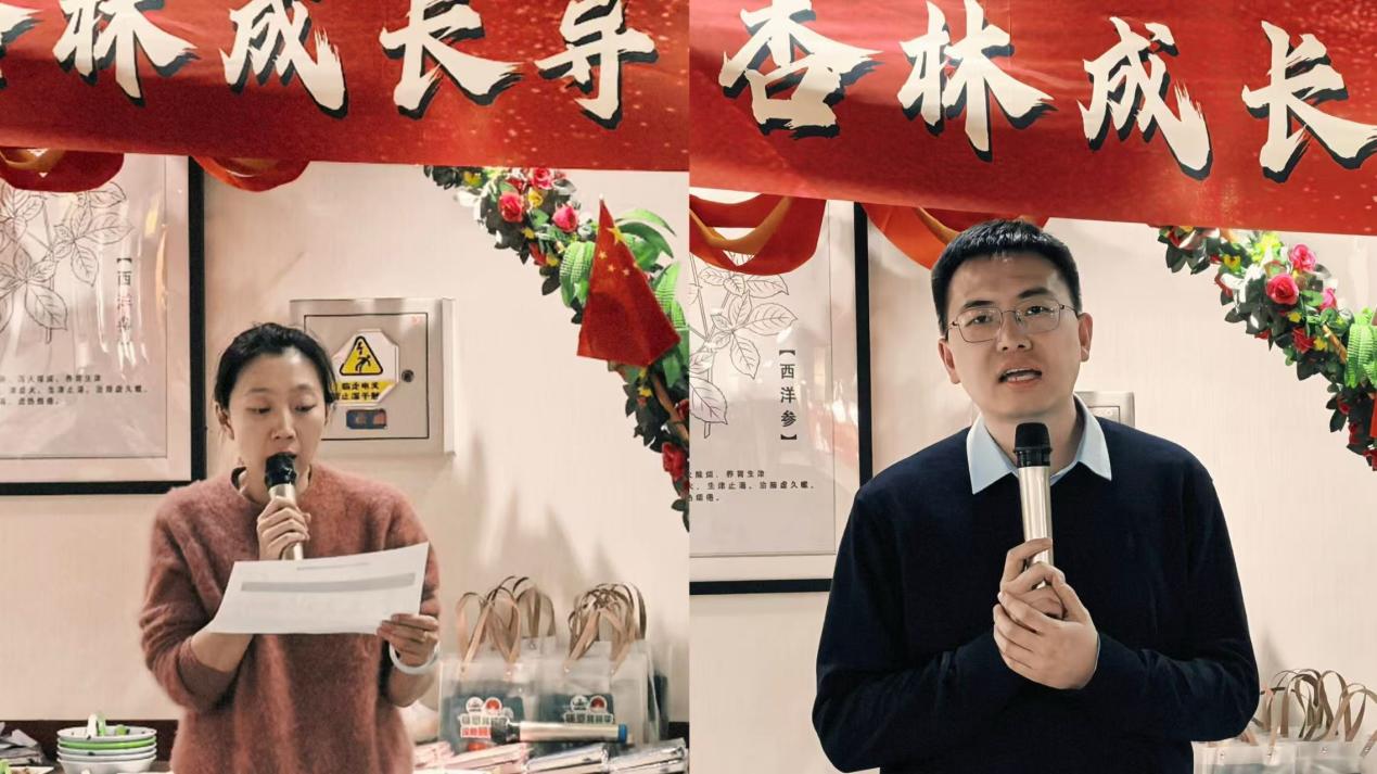 见面会首先通过一段视频回顾了往届杏林成长导师与员工们互动交流的精彩瞬间,展现了深厚的师生情谊。随后,学院副书记任智宇为新聘任的2025级本科生杏林成长导师们颁发了聘书,标志着新一学年的成长护航之旅正式启程。2025级各班班主任和班委代表依次上台,为杏林成长导师送上班级花名册和书籍。最后,杏林成长导师代表张春泥老师上台发言,用“扎根”“破土”“向阳”三个词表达了导师们对新生的殷切期望与关怀,承诺将尽心尽力为同学们的学业规划、专业发展和成长成才提供指导。